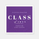En enkel, ren examensservett med stor kurs och examensårstyp och studentnamn.