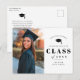En enkel examensannonseringsinbjudan postkort med stort examensår, klassisk typografi och studentnamn.