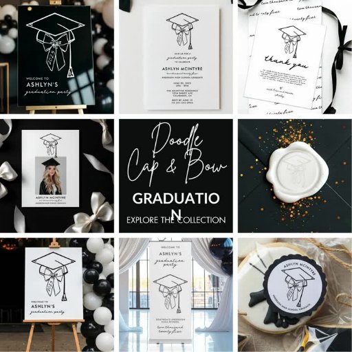 Fira din examenståks stora dag med denna stilrena minimalistiska examenspresenttagg! Med en handritad teckning av en examenshatt prydd med en söt bow, är denna moderna svart-vita design både elegant och tidlös. Perfekt för gymnasie- eller högskoleexaminerade, är det lätt att anpassa med dina evenemangsuppgifter. En klassisk avslutande touch för presenter, partisfavoriter eller examensfirande dekorationer!