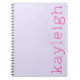 Denna underbara dagbok har en ljuslila bakgrund och ditt barns namn i stor rosa typografi. Den här roliga och moderna anteckningsboken gör en underbar födelsedagspresent eller tillbaka till skolan-present!