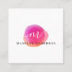 Minimalistisk färgstark rosa vattenfärgsvit monogr fyrkantigt visitkort