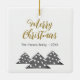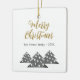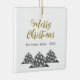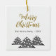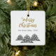 Modern Julgran-skript, minimalistisk Festive Family Ceramic Ornament. Tre enkla grått Julgranar med vitt bollar. Texten God jul finns i ett trendig-skript. Anpassa med texten.