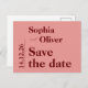 Minimalistisk fet rosa typografi spara datumet Postkort
