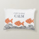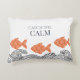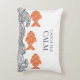 Fånga Lugn, fisk och Vinkara dekorativ kudde. Fisken framställs i en mjuk terracotta-orange och dekoreras med ett känsligt blommönster, vilket ger en viskartad, japaninspirerad beröring. Nedanstående vågar illustreras med bra black linjer i ett traditionellt skogsblock stil.