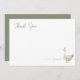Söta moderna Tack-kort med vattenfärg-illustration av en gås som bär på en födelsedagsmössa för Silly Goose födelsedagsfirande, med rubriken "Tack" i salviagrön kursiv stil.