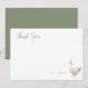 Söta moderna Tokiga Gås födelsedagsfest tack platta kort, med en akvarellillustration av en gås som bär en festhatt. Rubriken "Tack" är i en sagegrön kursiv stil.