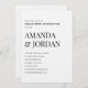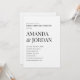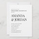 Fira kärlek med tidlös elegans. Den här inbjudan till ultraminimalistisk förlovningsfest innehåller ren svart typografi på en skarp vit bakgrund, perfekt balansering av sofistikering och enkelhet. Med fet serif namn staplat för att få genomslag och förfinade sans-serif-detaljer är denna utformning perfekt för dagens par som uppskattar underskattad lyx. Fullständigt anpassade för din händelseinformation. Den här inbjudan parar perfekt med teman för svartvitt, linne struktur och akryltecken.