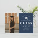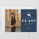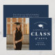 En enkel fotobjudan till examensfest med stort examensår, klassisk typografi och studentnamn.