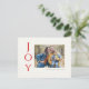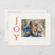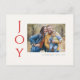 Säg det helt enkelt med dessa 4,25 x 5,6-tums helgdag-vykort med hälsning, "Joy," i rött blått brev på en elfenbensbakgrund. Lägg bara till ditt favoritfoto, ditt namn och år. Baksidan har platshållare för ditt utskick till adress och ett valfritt meddelande.