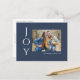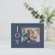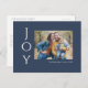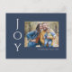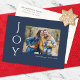 Säg det helt enkelt med dessa 4,25 x 5,6-tums helgdag-vykort med hälsning, "Joy," i vitt brev på marin blå bakgrund. Lägg bara till ditt favoritfoto, ditt namn och år. Baksidan har platshållare för ditt utskick till adress och ett valfritt meddelande.