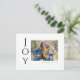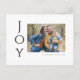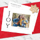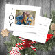 Säg det helt enkelt med dessa 4,25 x 5,6-tums helgdag-vykort med hälsning, "Joy," i vitt brev på svart bakgrund. Lägg bara till ditt favoritfoto, namn och år. Baksidan har platshållare för ditt utskick till adress och ett valfritt meddelande.