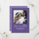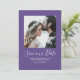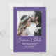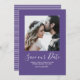 Minimalistisk Foto Spara Datumet Annonsering med en fräsch och enkel fyrkantig fotoklippsdesign i lila. Lägg till ett foto och dina bröllopsdetaljer för att anpassa. Smala vita ränder pryder baksidan av inbjudan. Bakgrundsfärgen på baksidan av inbjudan kan ändras för att komplettera fotot eller för att lägga till din bröllopsfärg.