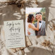 Vi presenterar vårt minimalistiska foto-elopement bröllopsfest-kort, perfekt för paret som valt en intim vigselceremoni. Denna moderna och eleganta inbjudan har ett vackert foto av det nygifta paret, omgivet av en ren och enkel design. Den minimalistiska stilen och den mjuka färgpaletten skapar en tidlös och sofistikerad look, medan de personliga detaljerna gör det unikt och speciellt för parets firande. Dela de spännande nyheterna med dina nära och kära med stil och gör din elopement-anmälan oförglömlig med denna vackra inbjudan.