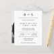 Bröllopsinbjudningar på budget med en enkel design med er monogram högst upp och bröllopsinformationen i svart på vit bakgrund. Baksidan har ert favoritfoto. Dessa billiga bröllopsinbjudningar med er bild är perfekta för ett modernt minimalistiskt bröllop.