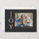 Säg det enkelt med dessa 7” x 5" julkort för foton med texten "Glädje" i vita bokstäver på svart bakgrund. Lägg bara till ditt favoritfoto, namn och år.