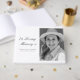 Den här minimalistiska "i kärleksfullt minne" begravningen/minnesgästen bok visar ditt foto med skript i svart på vit bakgrund. Anpassa den efter dina behov. Du hittar matchande produkter i min butik.
