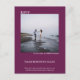 Det här vykortet gör det enkelt för dina gäster att svara på din bröllopsinbjudan. Har en enkel minimalistisk design med ditt foto på en kassibakgrund för lila, magenta eller färgad. På baksidan finns det utrymme för gästerna att visa sitt godkännande eller skicka beklaganden och välja vilken måltid de vill ha.