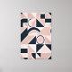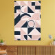 Denna abstrakta konst fängslar med sin harmoniska komposition av geometriska former – bågar, trianglar och fyrkanter – i mjuka toner och intensivt svart. Symmetrin frammanar modernitet och lugn. Perfekt för utrymmen som söker sofistikation och minimalism, förvandlar den varje område till en tillflykt för samtida design, där enkelhet och elegans möts.