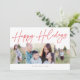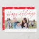 Det här moderna fotokortet i helgdag har ett enkelt 3-foto-ram och ett EDITABLE FÄRG-skript hälsning som heter "Glad helg". Konstruktionen är minimalistisk men ändå elegant. På kortets framsida finns det utrymme för tre foton (två lodräna och ett vågrät). På baksidan hittar du en koordinerande röd och vit snöflinga mönster. Alla färger i den här designen kan redigeras. Klicka bara på Redigera med Design verktyg. Tips! Du kan också ta bort baksidan av mönster, lägga till ytterligare foto och/eller text på baksidan.