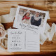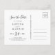 Detta minimalistiska God Jul spara datum fotoholiday vykort gör den perfekta enkla högtidliga hälsningen för ett förlovat par. Designen har klassisk svart och vit typografi i kombination med ett rustikt men elegant skriftsnitt med handskrivna stilen.