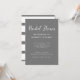 Minimalistiskt Grått White Script Stripe Inbjudningskort för möhippan. Elegant och enkel. Mallen har konfigurerats för att anpassa sig till din egen information.