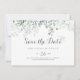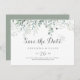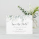 Detta minimalistiska grönt eukalyptus-vågrät bröllop spara datum är perfekt för ett bröllop i Österrike. Utformningen har grönt eucalyptus löv för vattenfärgsfärgers elegant.