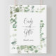 Denna minimalistiska gröna eukalyptus kort och present skylt är perfekt för ett modernt bröllop eller brudvisning. Designen har vattenfärg handritade eleganta botaniska eukalyptus grenar och blad som pryds av geometriska ramar.