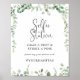 Denna minimalistiska gröna eukalyptus selfie station skylt är perfekt för ett modernt bröllop eller bröllopsfest. Designen har vattenfärg handritade eleganta botaniska eukalyptus grenar och blad som prydar geometriska ramar.