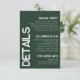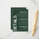 Minimalistisk grön vit typografi Bröllopsdetaljer Tilläggskort