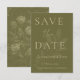 Meddela din speciella dag med detta eleganta, minimalistiska salvia gröna save-the-date-kort med raffinerad typografi och en subtil botanisk blomdesign. Den rika olivgröna bakgrunden i kombination med mjuk, krämfärgad textning skapar en tidlös och sofistikerad estetik som är perfekt för moderna par.