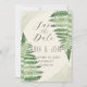 En enkel och botanisk illustration av trendiget för att spara vykortet för datum. Snygg grönt bröllop för älskare. Fält, skog eller växthusgaser inspirerat firande. bröllop, fern, modern, botanisk illustration, minimalistisk bröllop, botaniskt bröllop, trendig bröllop, växt älskare, grönt, vattenfärg, bröllop, vattenfärg