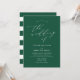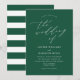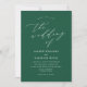 Inbjudan-gäster till firande i bröllop med våra minimalistiska inbjudningar till bröllopsbröllop. Den enkla elegant bröllop inbjudan-visningen som du bröllop detaljerar i vitt accentuerad av vackra kalligrafskript mot en bakgrund av grönten av skogen. Baksidan har grönt och vitt rand. Utformningen är en del av vår minimalistiska kalligrafi i bröllop.