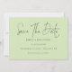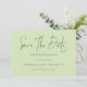 Minimalistisk Grönt för skräppostbegränsning sparar datumet. Enkel elegans med Spara datumet i ett modernt skript.Resten av texten kan du enkelt anpassa. Färgen text och bakgrund kan ändras om du vill genom att redigera ytterligare alternativ.