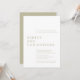 Elegant enkel minimal bröllopsinbjudan med ren typografi och en djärv modern sammansättning. Utformningen har detaljer i bröllop som är justerade mot förskjutna marginaler, vilket markerar parets namn som ett isolerat textblock. Utformningen är borttagen från främmande ornamentering och prioriterar därmed funktionalitet, balans och harmoni. Perfekt för par som omfattar ytterst enkelhet, elegans och stil. Kortets baksida är lämnat tom med en solid färg-bakgrund. Design finns i ett markerat urval av modernt färg och är lätt att personlig. en kommentar och sök hjälp med att anpassa eller anpassa sig. Vi ser fram emot att höra från och arbeta med er!