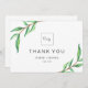 I snyggt bröllop tackar du dig för att kortet har grönt vattenfärgsfärgade löv på vit bakgrund, med initialer. Baksidan är tom så att du kan lägga till en personlig anteckning.