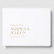 Denna minimalistiska guld moderna konst deco bröllop gäster bok presenter både en elegant, svart tidskrift och en avslappnad, enkel design för ett traditionellt eller mer jordnära giftermål firande. Den enkla, neutralt guld och vita layouten med unik, klassisk typografi hänvisar till minimal boho eller klassliknande återtro skapar den en perfekt för alla teman.