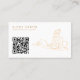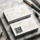 Förhöj ditt professionella varumärke med denna sofistikerade minimalistiska design med elegant guldtonad linjekonst av en kvinna som arbetar vid sin bärbara dator. Framsidan erbjuder en ren layout för alla dina viktiga kontaktuppgifter, inklusive länkar till sociala medier, webbplats och professionell adressinformation. Vänd på kortet för att hitta en framträdande scannbar QR-kod som är utformad för att omedelbart länka kunder till din digitala portfolio, webbplats eller sociala profiler. Denna samtida estetik är mycket idealisk för kreativa direktörer, designers och kvinnliga entreprenörer som söker ett funktionellt men konstnärligt nätverktyg. Se till att du gör ett minnesvärt första intryck samtidigt som du ger en sömlös digital anslutning till din publik.
