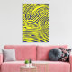 En minimalistisk modern konstdesign av detaljer i ett fingeravtryck i gult på mörk blått bakgrund.