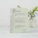Ett tidlöst bröllop-menykort med handdragna eukalyptus-sprickor på en ljusskygg grönt. Elegantens skript och klassiskt serif typsnitt kombineras för att markera menydetaljer och parets namn. Perfekt för naturinspirerat eller minimalistiskt bröllop med romantisk beröring.