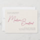 Bjud in gäster till din förfest med denna roliga och djärva minimalistiska bröllopsinbjudan. Den har ett avslappnat rosa minimalistiskt handskrivet manus med enkel typografi och ett randigt mönster på baksidan. Anpassa denna bröllopsbrunch-, bröllopslunch- eller bridal shower-mall genom att lägga till ett anpassat namn och dina evenemangsuppgifter. Rosa är inte din färg? Inga problem, alla färger på denna enkla bröllopsinbjudan kan ändras i designverktyget om du vill.