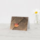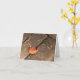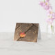 Ett enda lönnlöv på väderbitna träbrädor symboliserar höstsesongen. Ett orange och rött blad och bruna väderbitna brädor visar upp den dämpade färgskalan under säsongen. Dela din kärlek till höst och tacksgiving med detta tomma vykort. Det minimalistiska fotografiet finns också tillgängligt som en affisch och som vykort som är perfekta som personliga tacksgiving-inbjudningar.