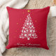 En röd bakgrund med vita cirklar i Julgran, framhävd av en gyllene stjärna, åtföljd av glad festlig hälsning, skapande en varm och berömmande helgdag.