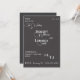 Denna eleganta utformning är perfekt för alla minimalistiska bröllop. En vacker, svart bakgrund med elegant och detaljer skrivna i vitt. Se till att checka ut matchande objekt.