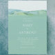 Den enkla och sofistikerade inbjudan visar en lös vattenfärgsberg. Denna naturinspirerade design omger parets namn på ett elegant sätt i ett modernt typsnitt. Denna utformning fungerar bra för destinationsbröllop, utomhus eller till och med på bakgården bröllop med backe i avstånd.