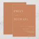 Inbjudan till minimalistisk inbjudan till Rustic Burnt Orange-bröllop. Anpassa all text och färg i denna moderna inbjudan till elegant bröllop.