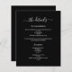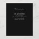 Ett modernt program/tidslinje för elegant bröllop. En svart bakgrund. Anpassa och lägg till information om namn och bröllop. Vit färgad brev. Text på båda sidor. 1 lakan = 1 program tryckt kant till kant.