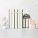 Papper förpackning av färg med minimalistisk julhelg. Har minimalistisk julafton färg rand mönster i rött, grönt och guld färg.