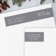 En modern helgdag-radbrytning runt returadressetiketten med ett handskrivet typsnitt för din familj namn i vitt med en skifferdel grått-funktion i färg i en skandinavisk stil. Namn och adress kan lätt anpassas för personligt bruk. Ett trendig, minimalistiskt och contemporary för att visa ut den här julhelgen!