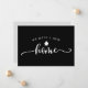 Skicka det här moderna meddelandet om minimal flytta till din familj och dina vänner och berätta för dem att du har flyttat till ett nytt hem. Framsidan är enkel med "hem" från ord som visas i en handskriven kalligrafi från stil på en svart bakgrund. På baksidan kan du meddela din ny adress.
