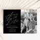 Minimalistisk kallgrafi, svart och vitt foto spara datumet